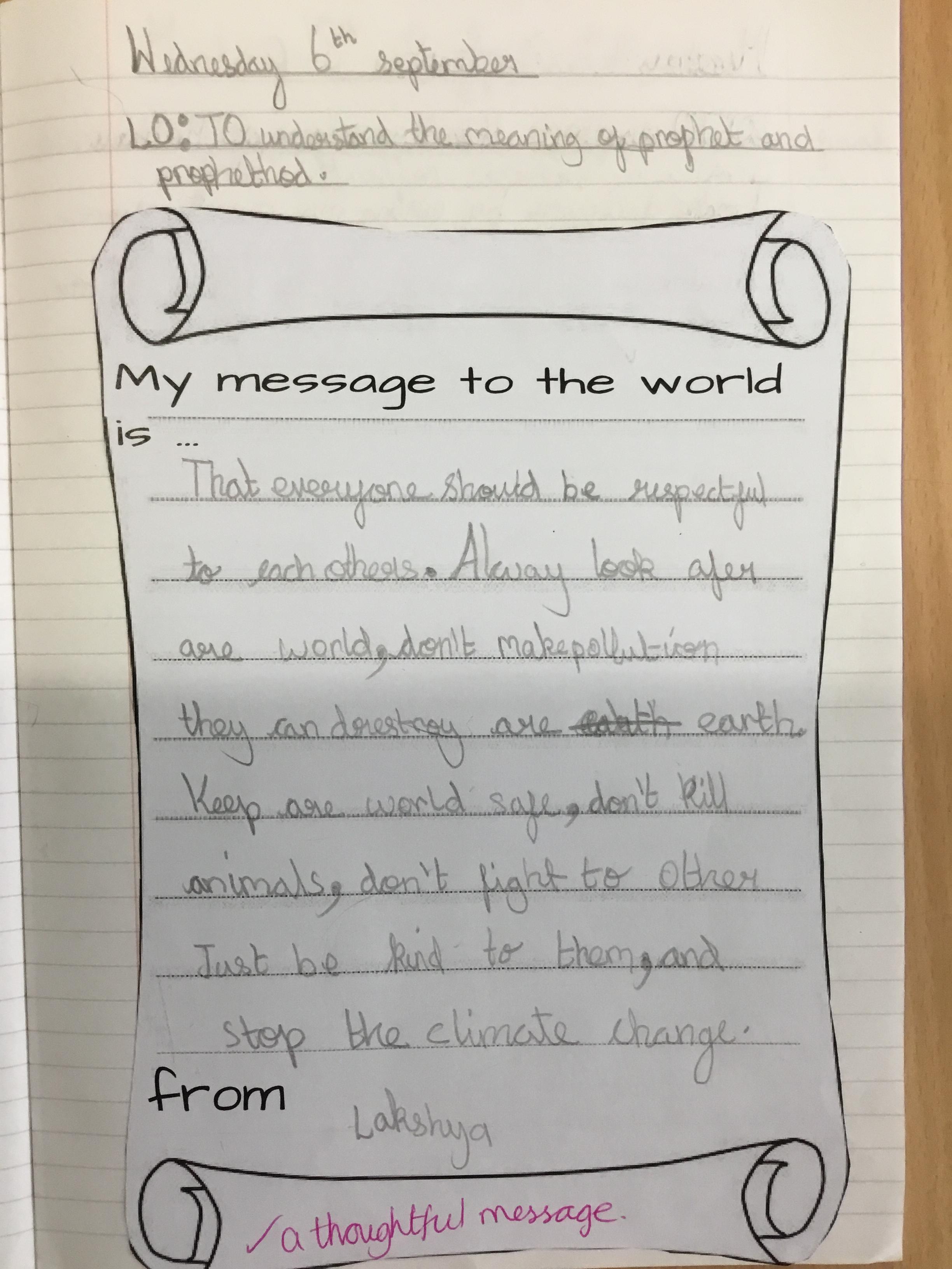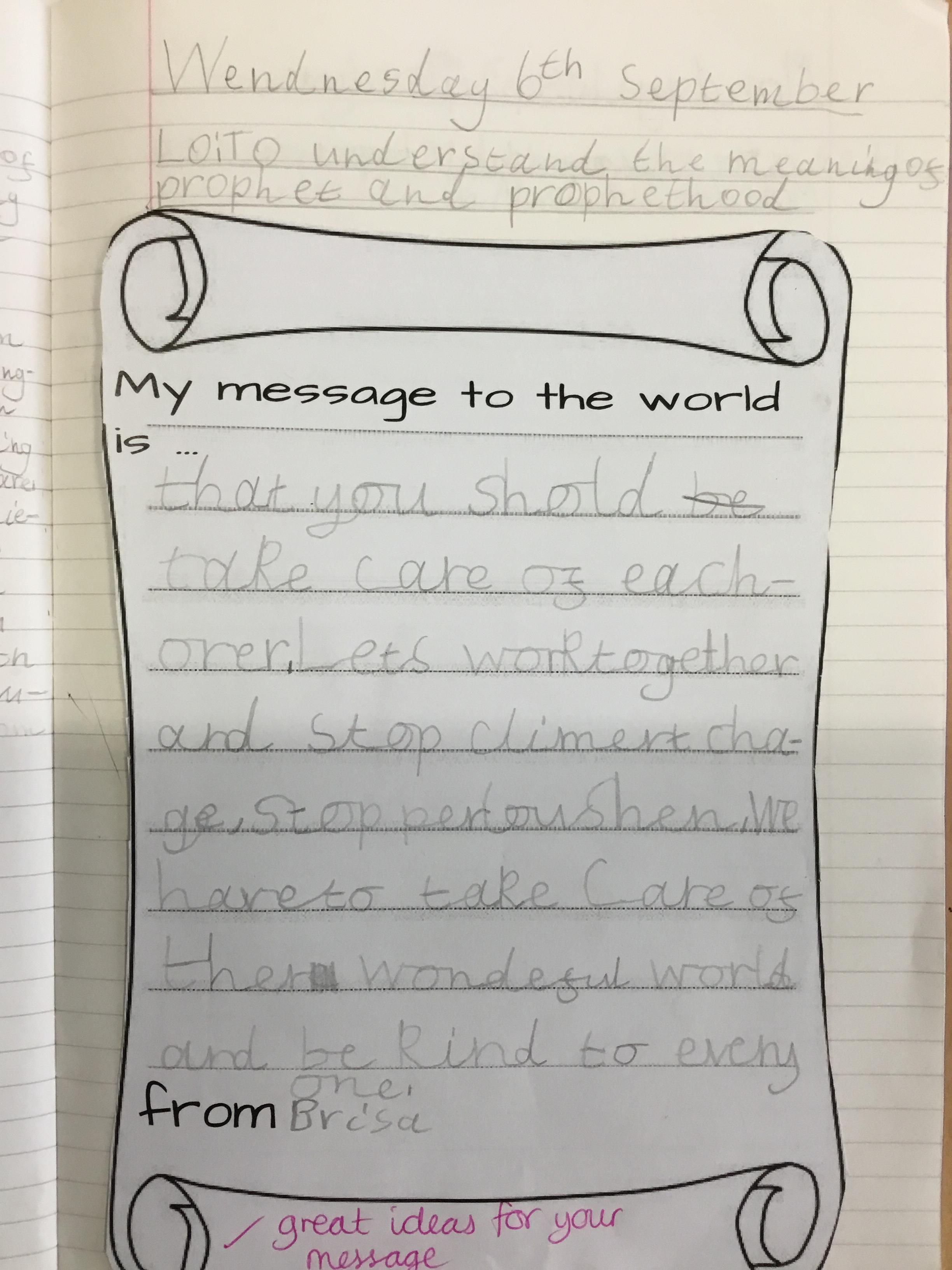 We live in a multi-faith world, and I believe that it is important that all children gain a greater and clearer understanding of these different faiths.  Religious Education plays an important role within the life of our school, it actively supports the values of the school and the curriculum by promoting the values of justice, trust, respect and the care of all that is around us.