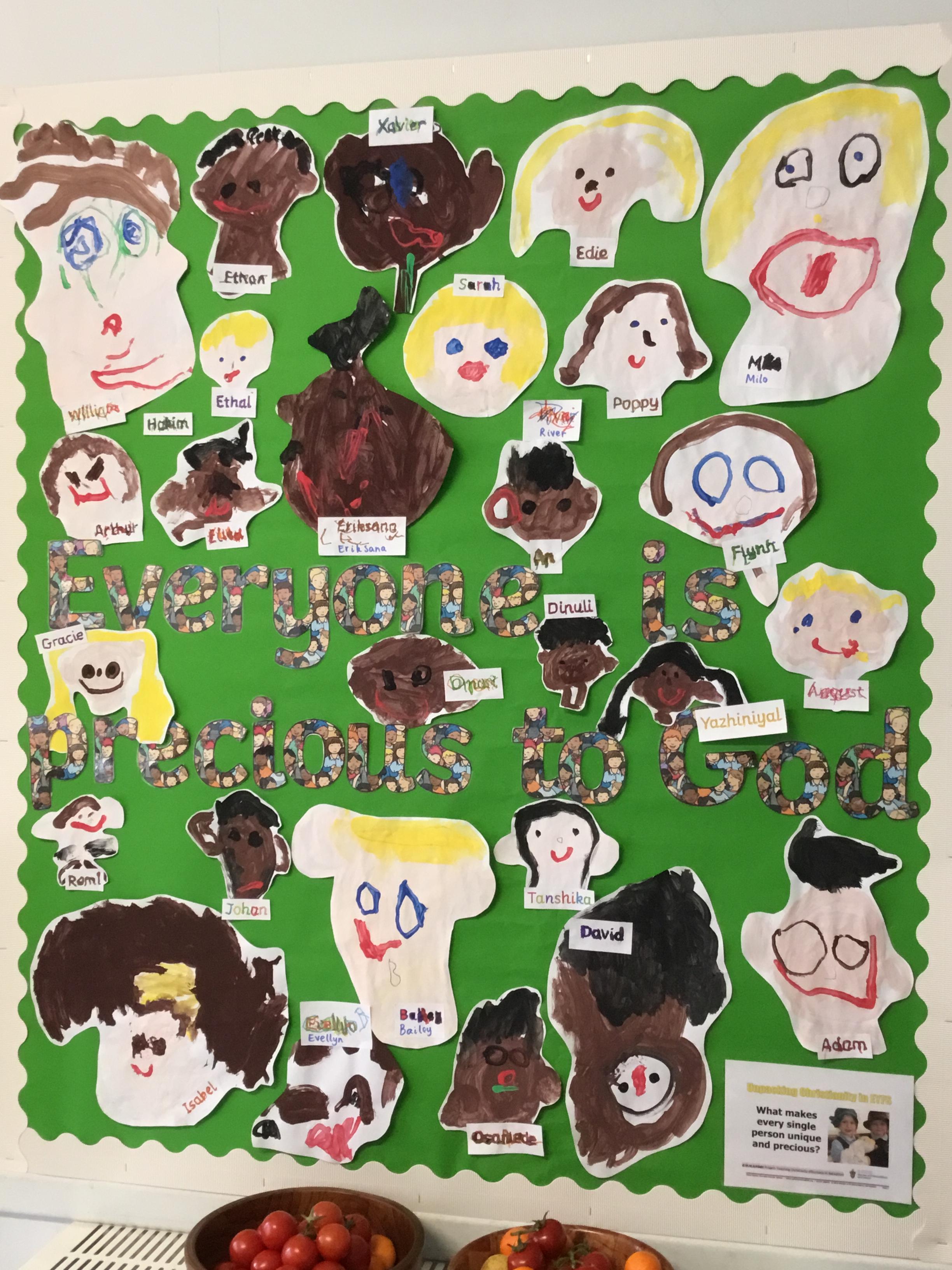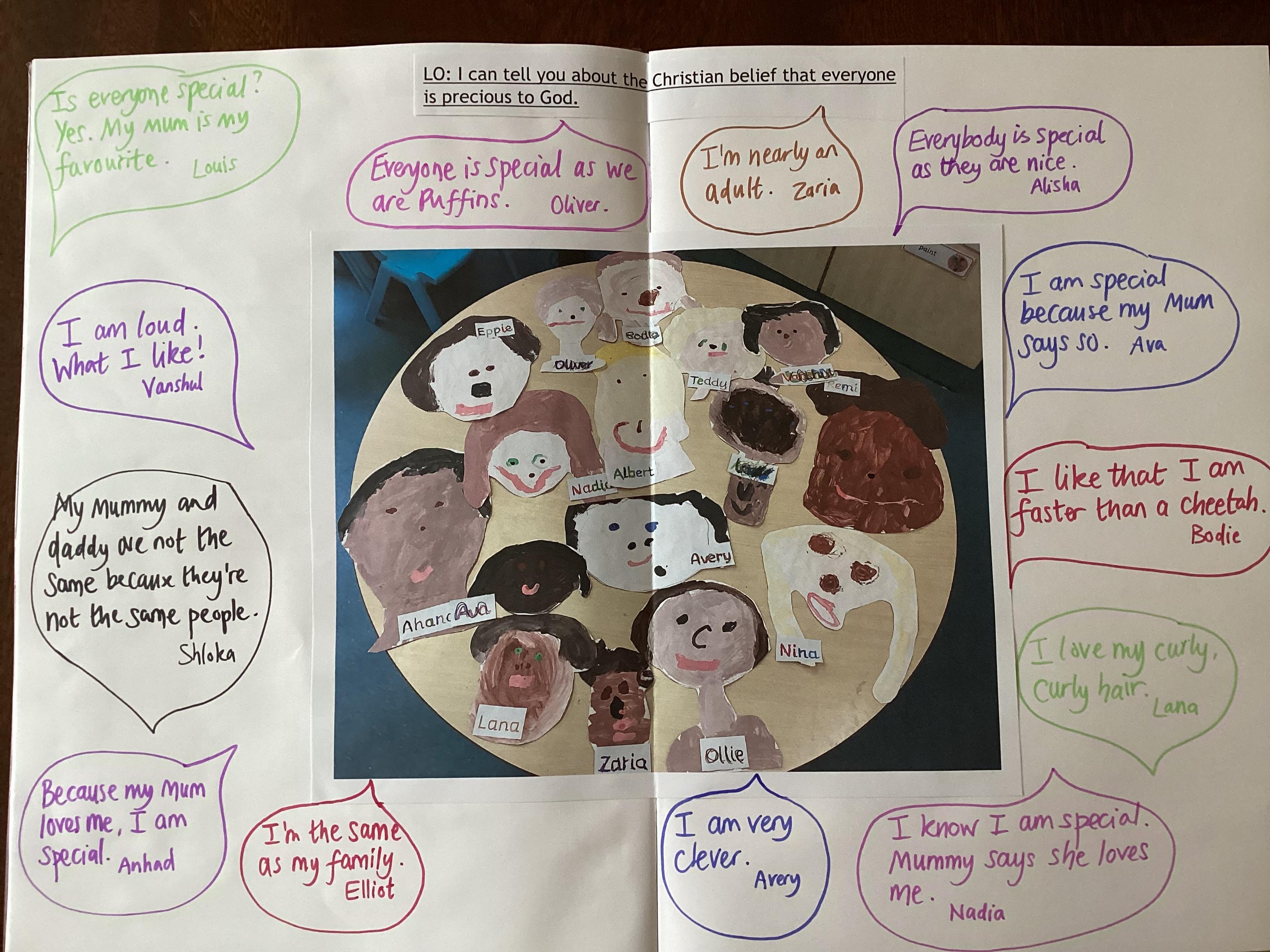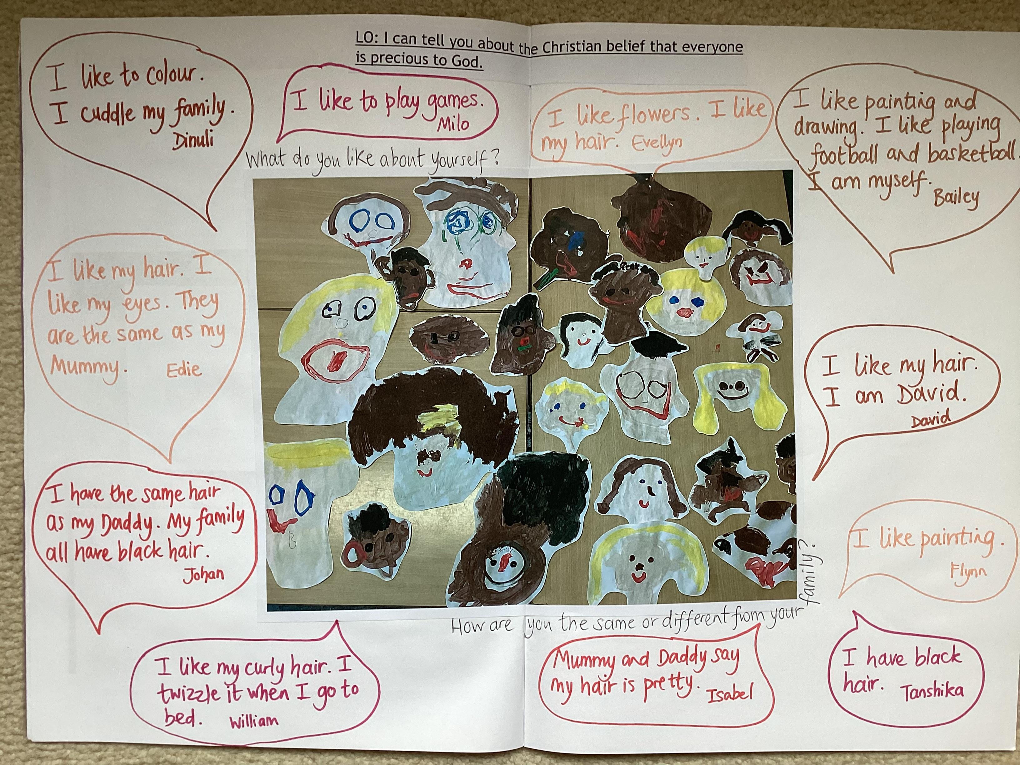 RE places specific emphasis on the children valuing themselves and others, on the role of the family and the community in religious belief and activity, on the celebration of diversity in society through understanding similarities and differences, and on human stewardship of the earth.  Many of our children are keen to share with their peers, their own experiences from home, and how they celebrate their faith within their family.