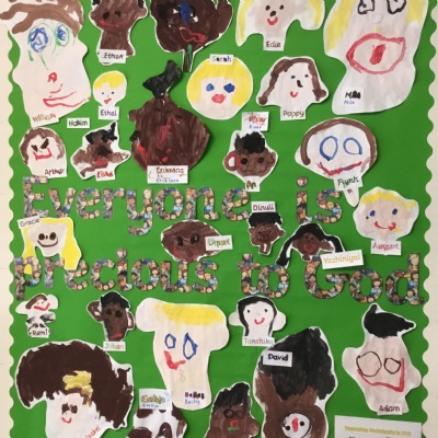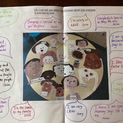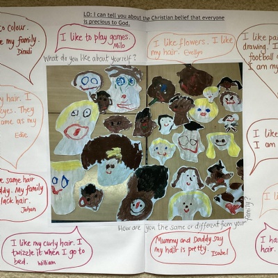 RE places specific emphasis on the children valuing themselves and others, on the role of the family and the community in religious belief and activity, on the celebration of diversity in society through understanding similarities and differences, and on human stewardship of the earth. Many of our children are keen to share with their peers, their own experiences from home, and how they celebrate their faith within their family.
