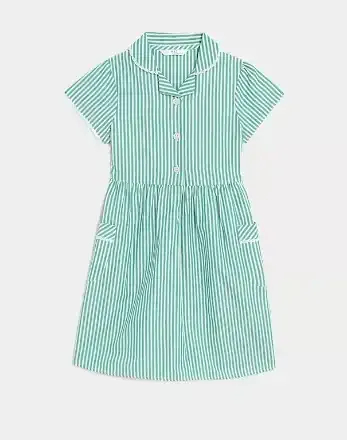 Summer Dress - Candy stripes of green and white, short sleeved.